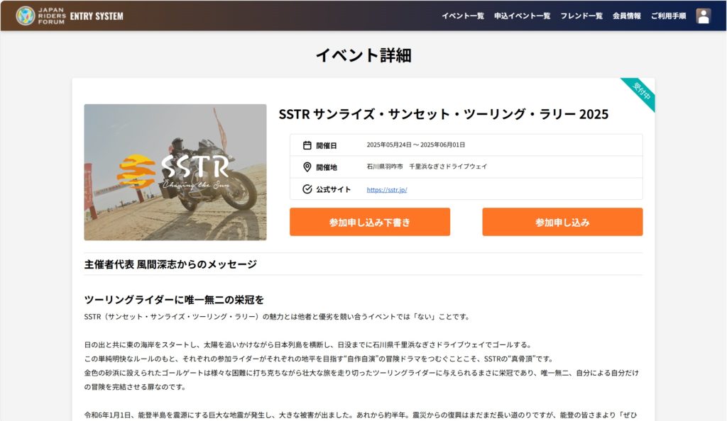 日本中のライダーが千里浜を目指すこの壮大な冒険、その第一歩は「エントリー」から始まります。