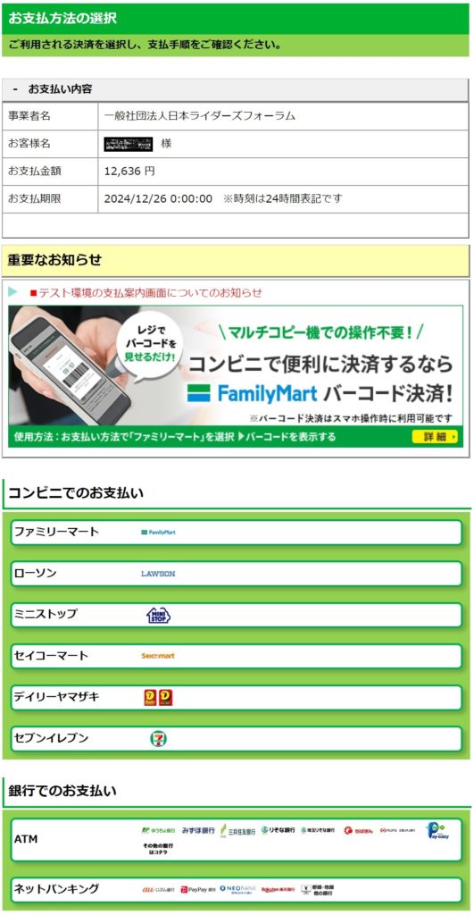 コンビニ等のオンライン決済の場合
